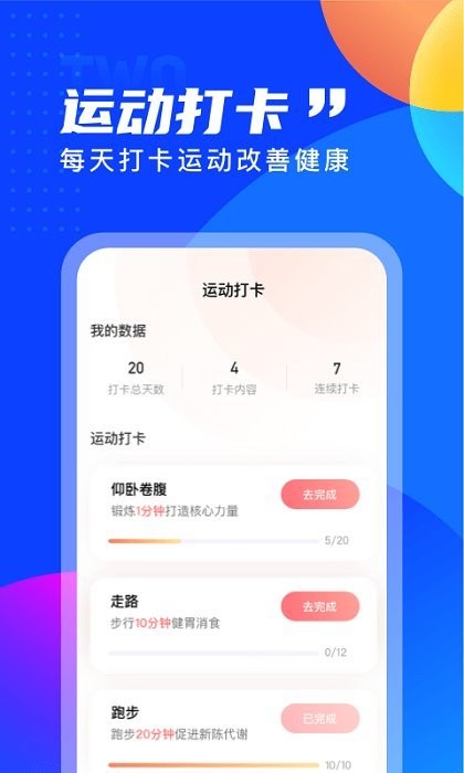 随时记录用户的步数,在线运动打卡帮助用户养成良好的生活习惯