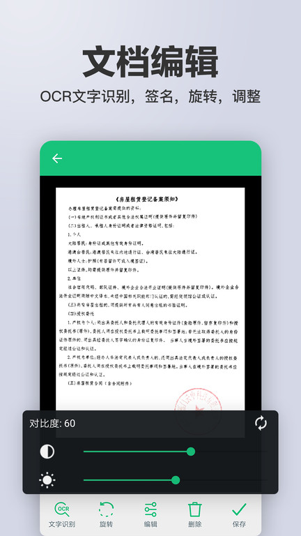 扫描文字识别ocr软件是一款随身移动扫描软件,不仅拥有强大的文字识别功能,同时还能直接扫描照片、身份证、文档等内容,并根据你的设定来进行导出,有效的提升你的办公效率.