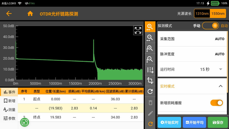 采用此APP连接到在线的智能运维仪设备后,不需身处通讯机房即可远程操作设备进行光缆线路的状态监测、故障寻找、位置探测等工作。