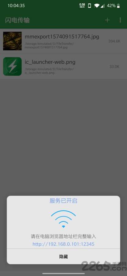 3、通过开启手机端App内置的服务器,生成一个动态的地址,然后通过浏览器实现上传、下载、删除文件等功能