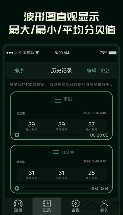2、可随时播放之前保存的声音测量记录,判断测量结果;