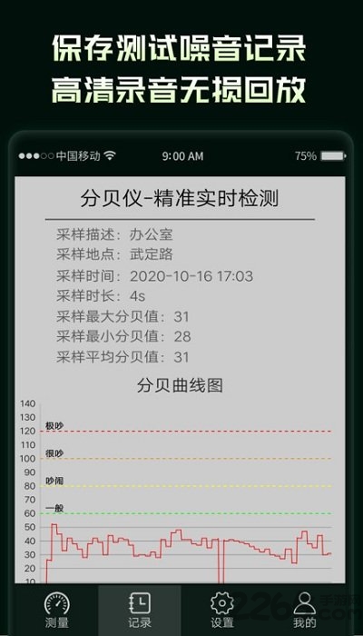 保存测试噪音记录,高清录音无损回放:保存之前的噪音记录声音,随时调取回放判断环境噪音;