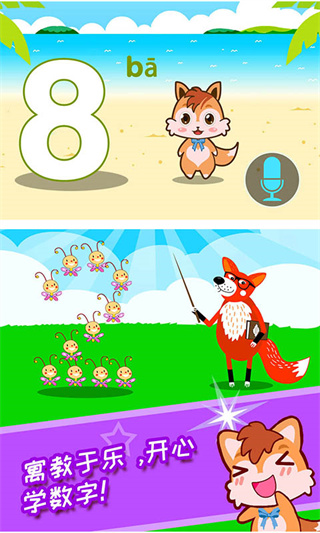 1、宝宝开心,爸妈省心,让数字变得好玩!2、场景众多:动物园、恐龙世界、农场、海洋世界,宝宝爱不释手!