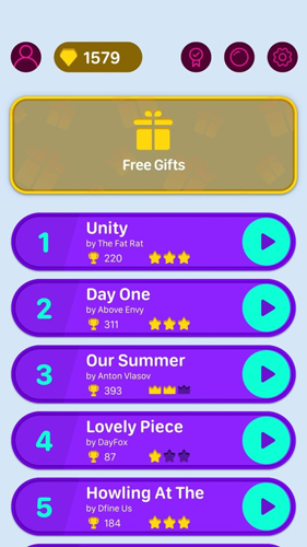 2.适合所有人的特殊游戏。通过选择自己喜欢的音乐,您可以随着节奏跳动手指,以确保球不会错过瓷砖;