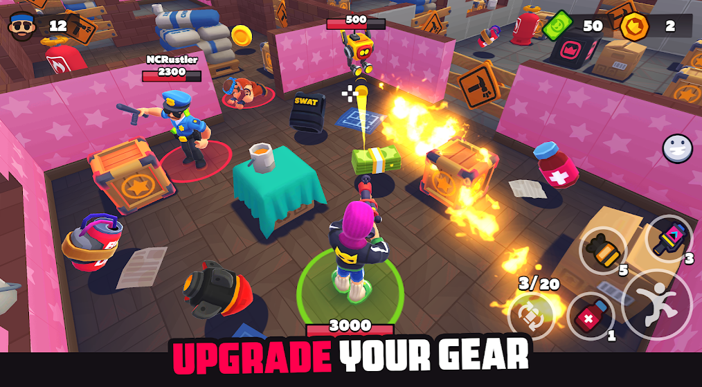 快乐地带是一款冒险挑战小游戏,在这款游戏中你将会体验到时长长达3分钟的射击大逃杀挑战,每一个位玩家都有可能是你的敌人,你需要使用自己的武器来保护自己,感兴趣的小伙伴快来下载游戏体验试试看吧。