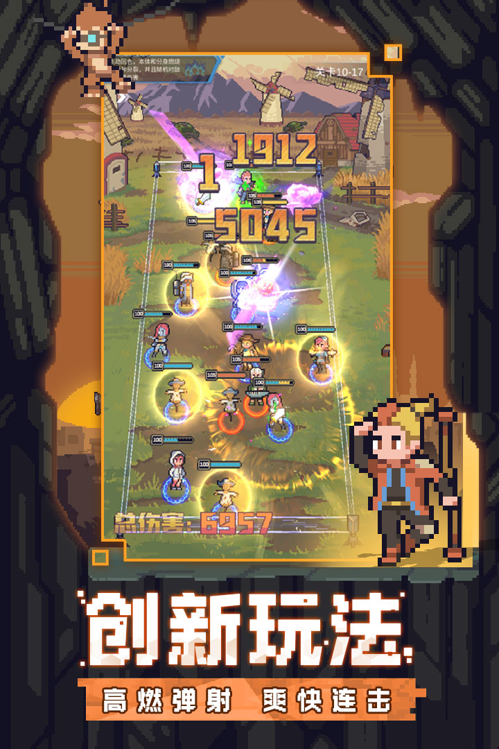 游戏的核心玩法是模拟物理碰撞,玩家操控英雄冲撞敌人造成伤害,每个单位都有拟真的物理属性,用类似桌球碰撞的方式战斗,但是这些桌球变成了可爱的像素英雄,拥有各自花里胡哨的技能,可以用各种骚操作配合秀敌人一脸。