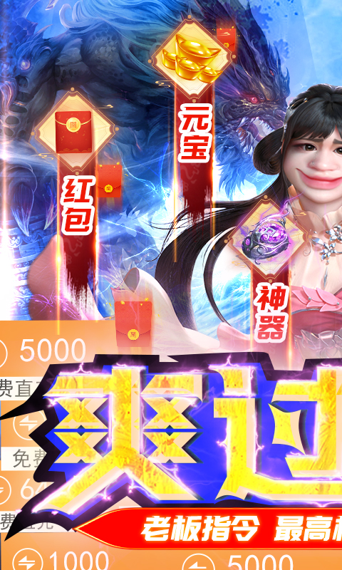 4、上线送1000元充值、可激活1000元专属充值活动、可获得价值8888元传说神器